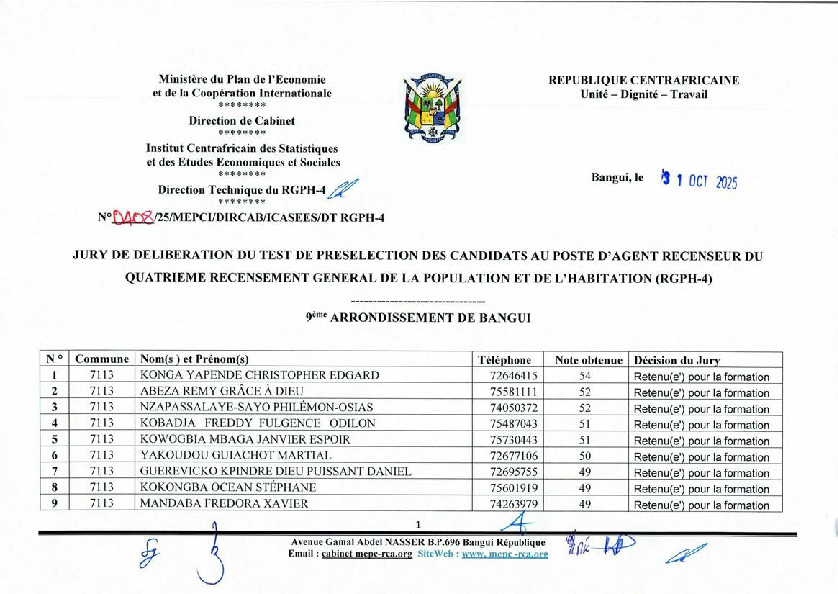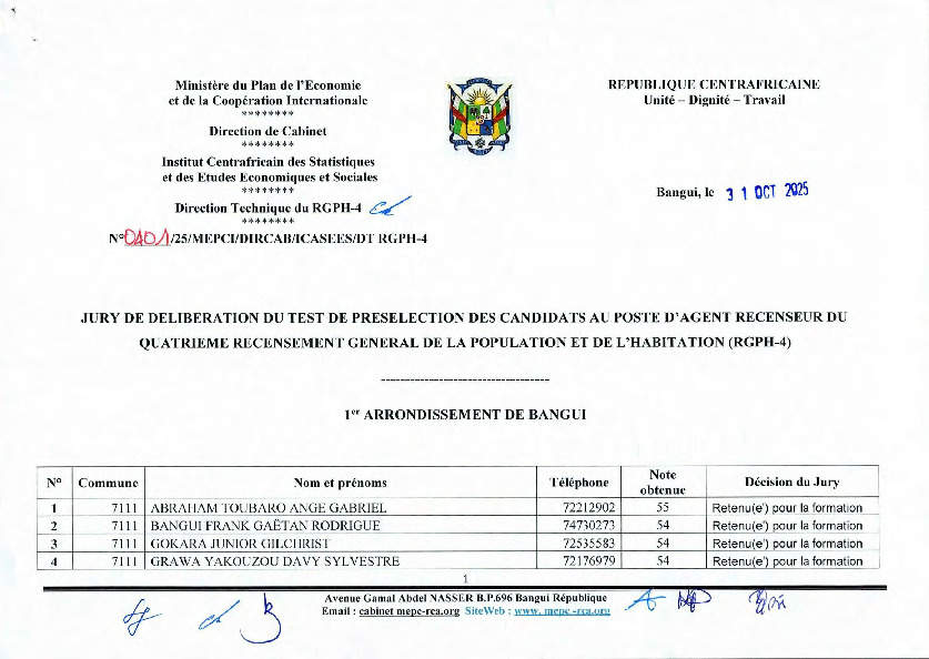 ALINDAO_Jury de délibération du test préliminaire de présélection des agents recenseurs
